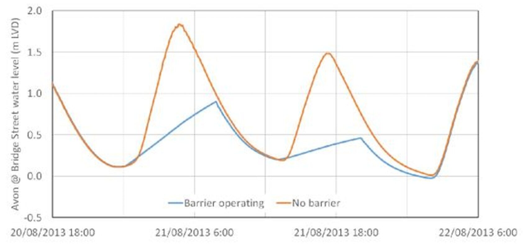 What is a tidal barrier? A tidal barrier is a structure normally left open to allow the daily movement of tides. It can be temporarily closed for several hours to block the peak of a high tide or storm surge from entering an estuary. This prevents water from backing up into rivers that flow into the estuary and reduces the risk of flooding upstream. While the barrier is closed, river water continues to enter the estuary. Once the tide drops, the barrier reopens and the estuary drains as usual. In theory, this cycle could be repeated across several high tides if required.